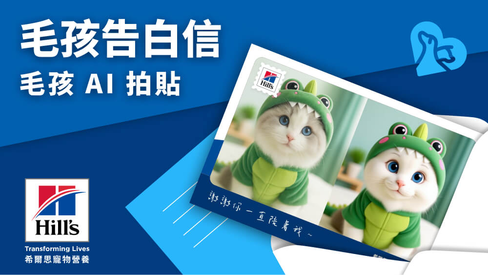 我們為希爾思打造了「愛的郵局——毛孩告白信」線上+線下整合互動企劃,透過 AI 影像生成與情感輸入,創造毛孩與飼主之間專屬的告白拍貼,串連社群擴散與品牌情感記憶。